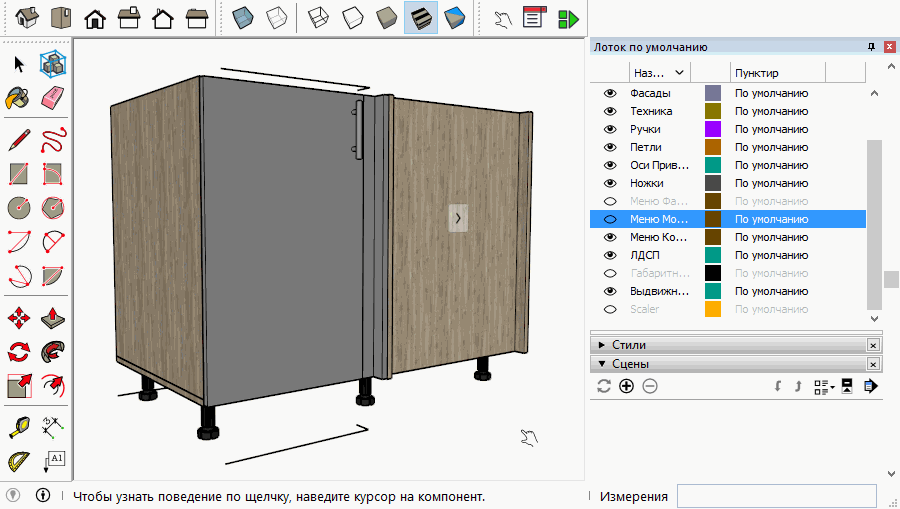Один из динамических компонентов библиотеки для трёх-мерного проектирования корпусной и кухонной мебели в программе SketchUp